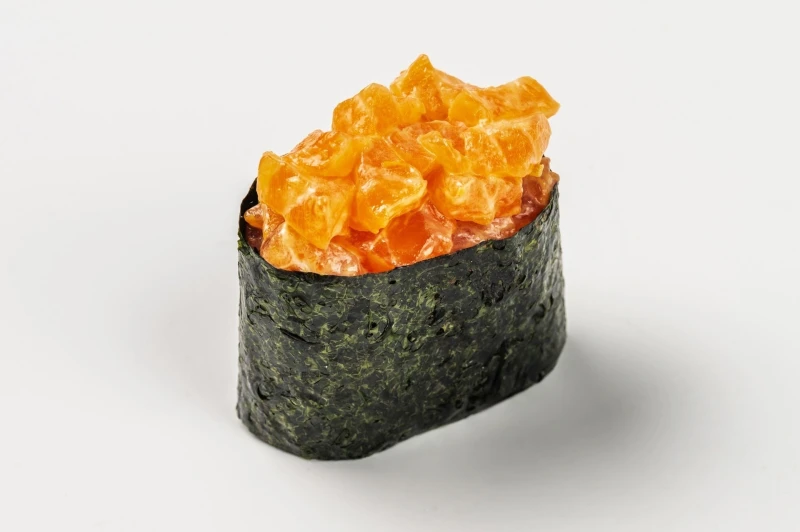 Лосось в соусе спайси, рис, водоросли нори, подается с соусом