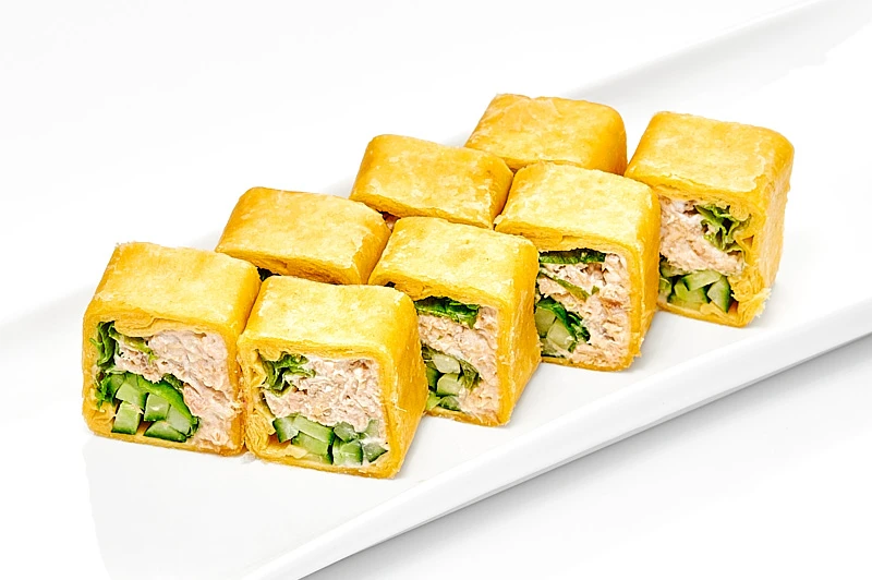 Лосось терияки, творожный сыр, огурец, лист салата, зеленый лук
